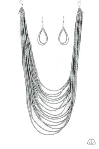 Paparazzi Beach Day Demure - White - Necklace & Earrings #A5179