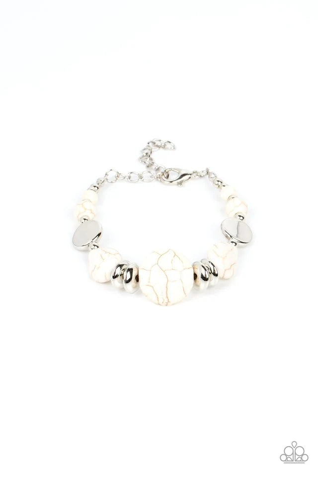 Embrace a touch of artisan elegance with this enchanting bracelet, where round and teardrop white stone beads harmonize beautifully with an assortment of mismatched silver accents. Skillfully strung on an invisible wire, this exquisite piece gracefully adorns the wrist. Complete with an adjustable clasp closure, it ensures a perfect fit for any occasion, adding sophistication to your style.