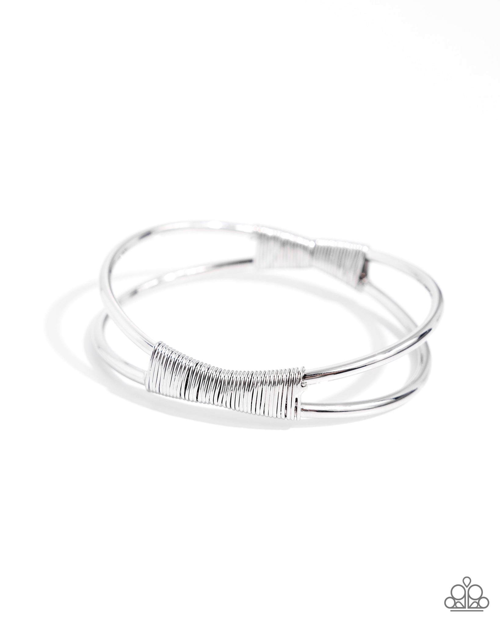 Featuring a high-sheen silver hue, thin high-sheen bars twist across the center of an airy twisted cuff, merging into a pop-of-color statement around the wrist.